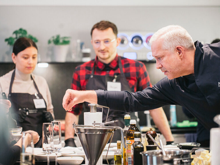 Gecoached werden die Workshops von absoluten Spezialisten aus den Gourmetwelten von Alexander Herrmann, die maximales Fachwissen in komprimierter Dosis, aber immer mit Blick auf die Anwendbarkeit zu Hause vermitteln.